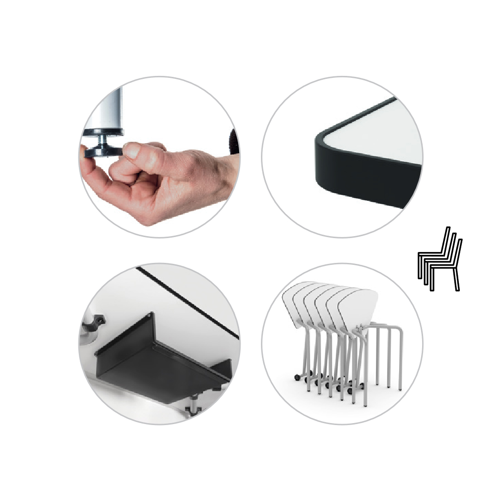 2. Sobre de melamina de 19 mm amb el contorn injectat de polipropilè i cantonades arrodonides.