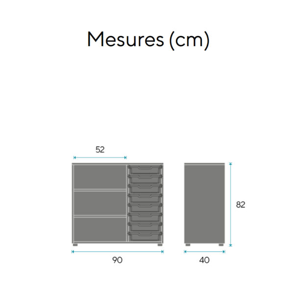 El Armario Escolar DOT 82B es un mueble bajo dentro del mobiliario escolar, diseñado para ofrecer una solución de almacenaje accesible, práctica y versátil. Combina una parte con estantes regulables y otra con bandejas extraíbles, lo que lo convierte en una opción ideal para mantener el aula organizada, con todos los materiales al alcance de alumnos y docentes.