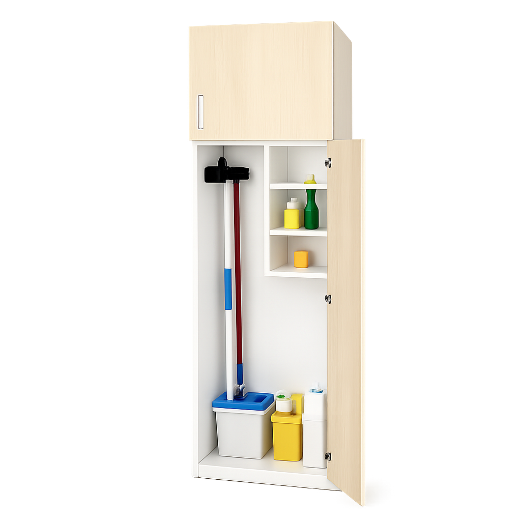 En los entornos escolares, especialmente en comedores y zonas de alto uso, es fundamental disponer de espacios específicos para el almacenamiento del material de limpieza. El CLEAN POINT responde a esta necesidad ofreciendo un mueble robusto, seguro y funcional, preparado para el uso intensivo del personal de mantenimiento.