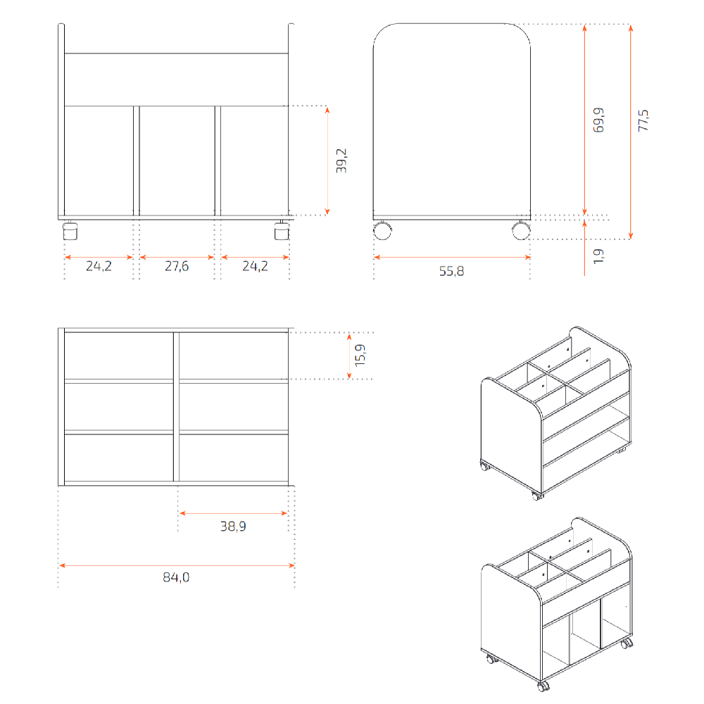 El Carrito para Libros DAN es una solución funcional y versátil para organizar y transportar material de lectura en bibliotecas escolares, aulas y espacios educativos. Diseñado como un carro biblioteca de fácil acceso y gran capacidad, permite mantener los libros ordenados y al alcance de los estudiantes. Su diseño abierto y sus ruedas opcionales lo convierten en una herramienta práctica para fomentar el hábito lector en cualquier rincón del centro.