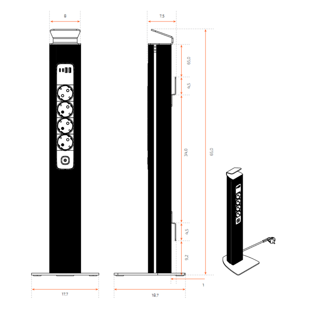 - Conectividad múltiple: Equipada con 4 enchufes y 4 puertos USB, permite cargar hasta 8 dispositivos al mismo tiempo.