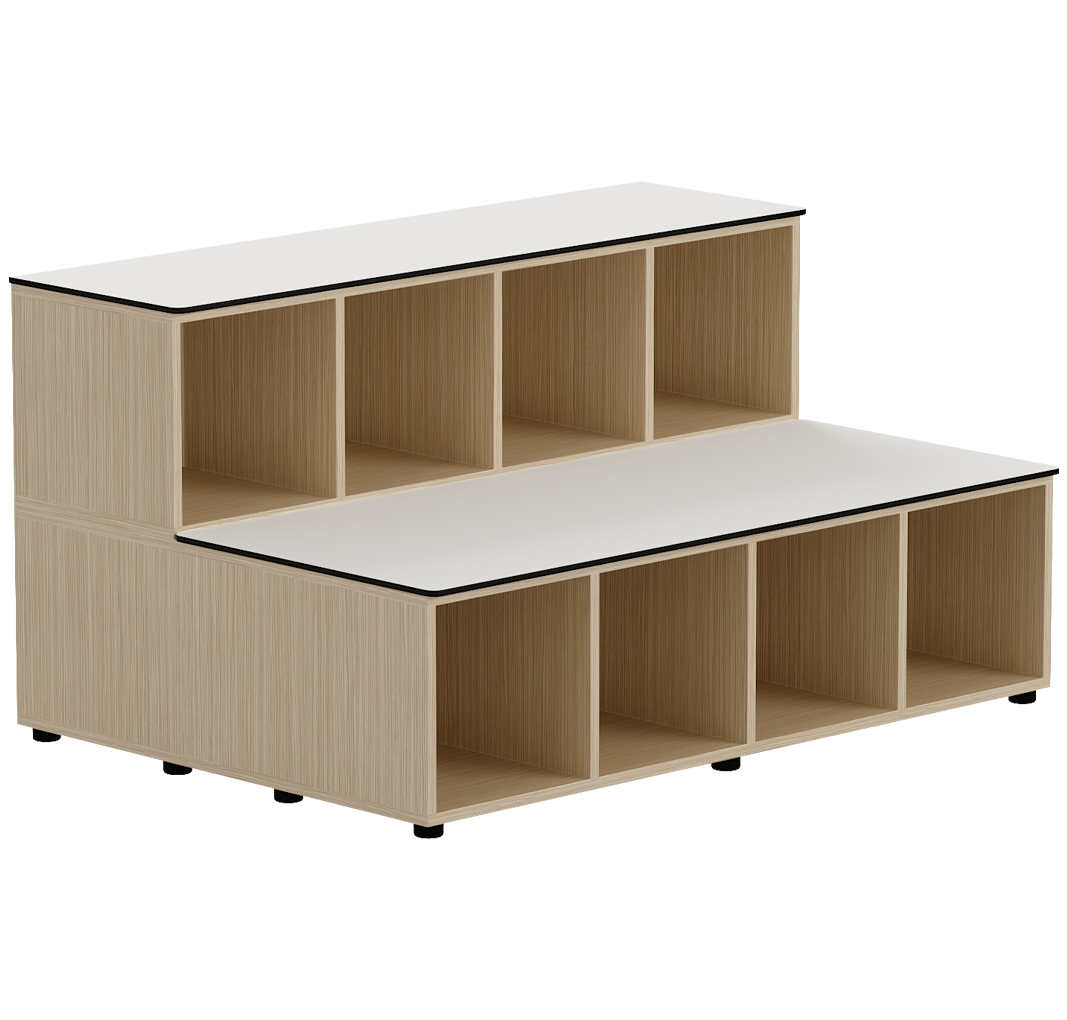 Su estructura incorpora un práctico espacio de almacenaje en la parte inferior, con opción de incorporar puertas, lo que facilita mantener el aula organizada sin perder funcionalidad.