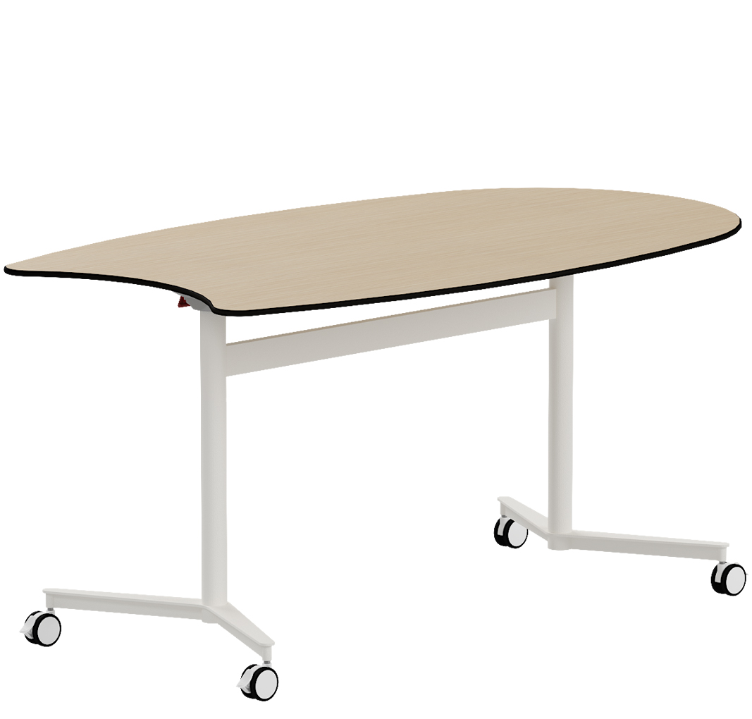 Tiene una forma ovalada pero con un extremo con un corte angular que facilita el acoplamiento con otras mesas. Se combina con los modelos Disc Up y Team, creando espacios de aprendizaje dinámicos y colaborativos.