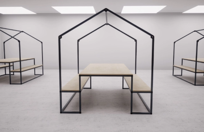 El conjunto IDEA HAUS es una propuesta de mobiliario escolar diseñada para estimular la creatividad, colaboración y sentimiento de pertenencia. Su estructura metálica en forma de casa no sólo aporta una identidad visual única, sino que también delimita el espacio sin necesidad de barreras, creando un entorno acogedor y funcional.