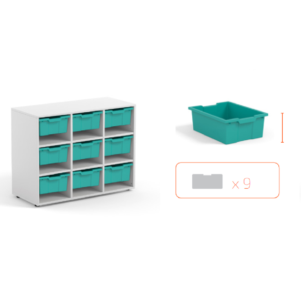 El Organizador MERIT con cubetas grandes es un práctico y robusto mueble organizador infantil, especialmente diseñado para mantener ordenados los recursos y materiales en aulas de educación infantil y primaria. Este sistema es perfecto para centros que buscan organizadores de material escolar que combinen funcionalidad, accesibilidad y durabilidad.