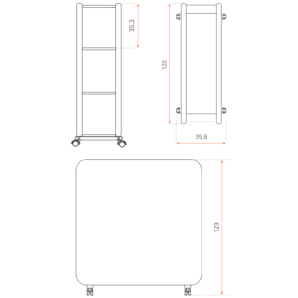 - Movilidad: Equipado con 4 ruedas con freno, permitiendo una fácil reubicación según las necesidades del espacio.