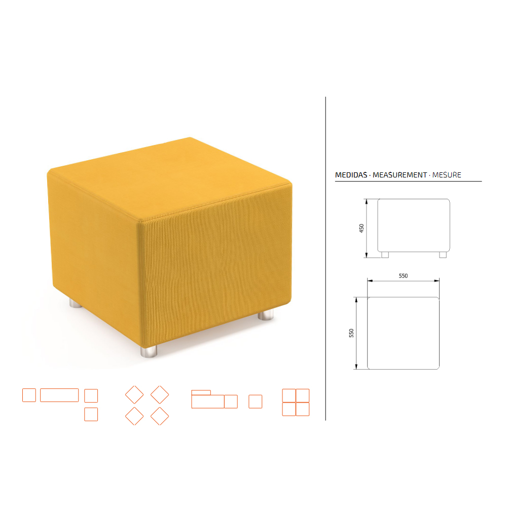 - Diseño modular cuadrado: Permite múltiples configuraciones para adaptarse a diferentes espacios y necesidades.